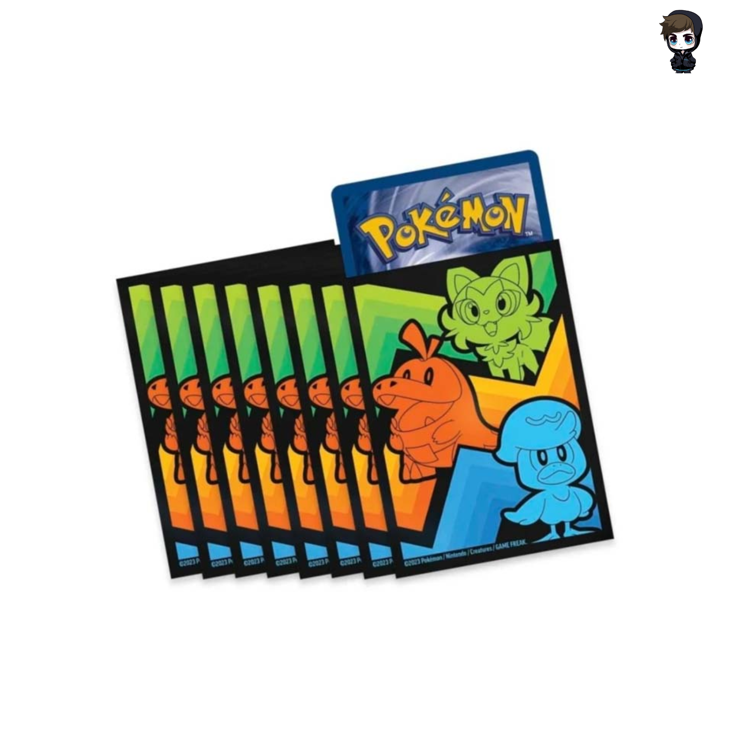 65 Kartenhüllen (Sleeves) aus der Entwicklung in Paldea Top-Trainer-Box.